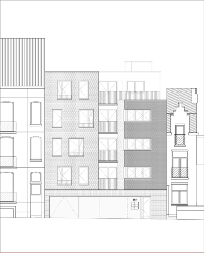 Le projet comprend d'une part la démolition d'une maison mitoyenne et d'autre part la nouvelle construction d'un immeuble d'appartements. Le nouveau bâtiment comprend un sous-sol, un rez-de-chaussée et quatre étages.