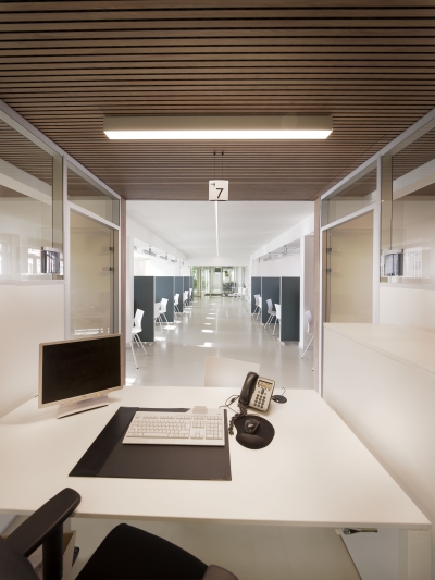 DEWIL architecten ontwierp het interieur van dit dienstencentrum in Jette. In een bestaand gebouw werden op de eerste verdieping 6 loketten met wachtruimte, 13 onthaalburelen, sanitair en een cafetaria voor zowel bezoekers als medewerkers geïntegreerd.