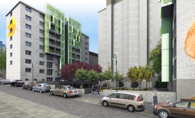 Renovaite van alle buitenschillen van 2 appartementsgebouwen. In 2015 schreef de Brusselse Woning een wedstrijd uit voor de gevelrenovatie van de site "Hoog III". DEWIL architecten i.s.m. denc!-studio werd tot laureaat verkozen. Het monolitische karakter van de bestaande gebouwen wordt door lichte terrasstructuren doorbroken.