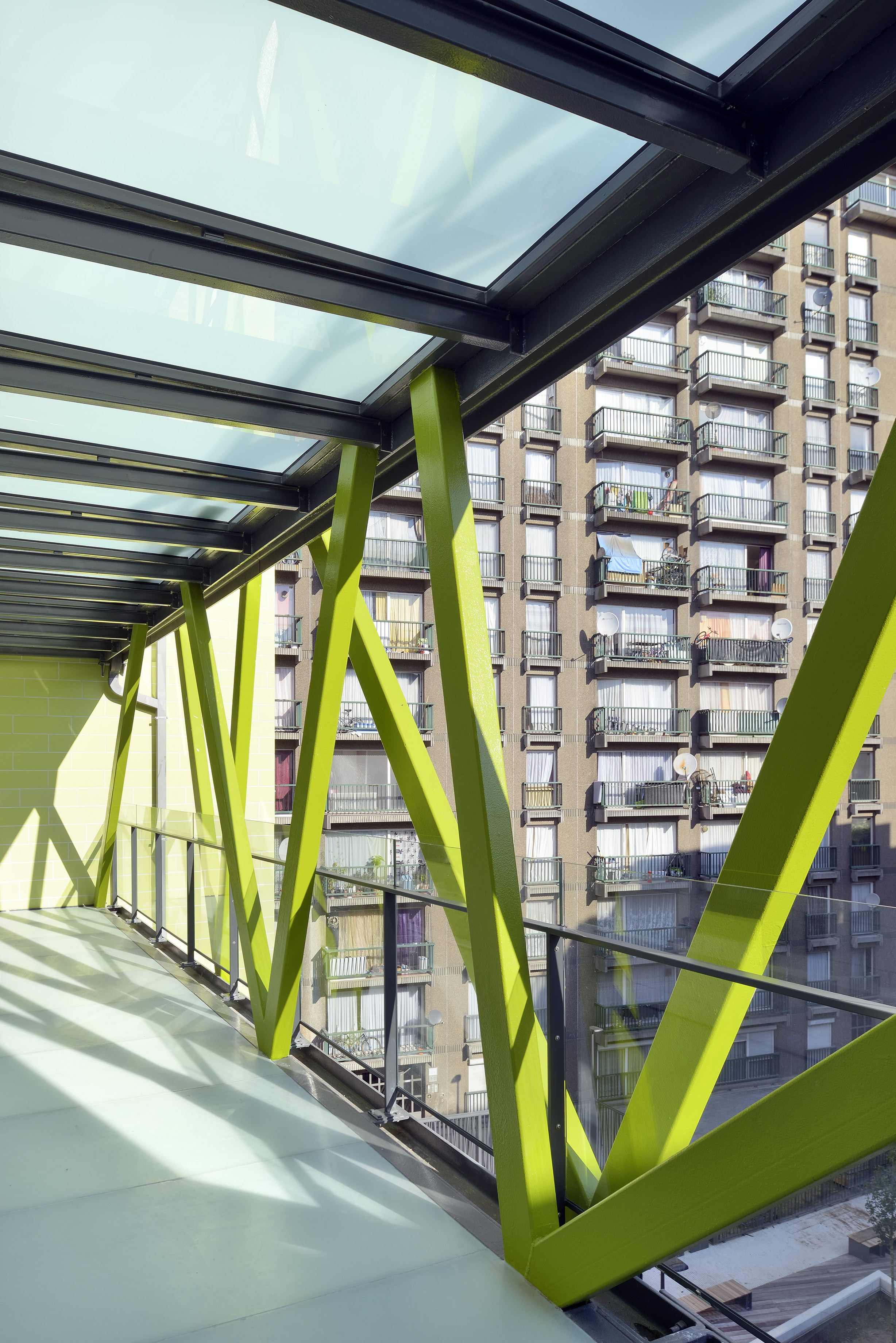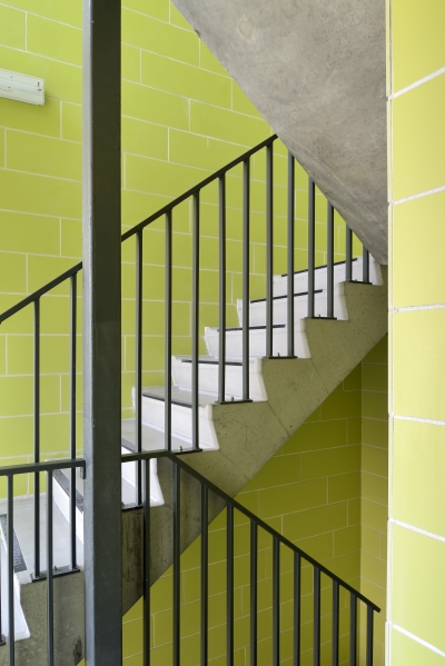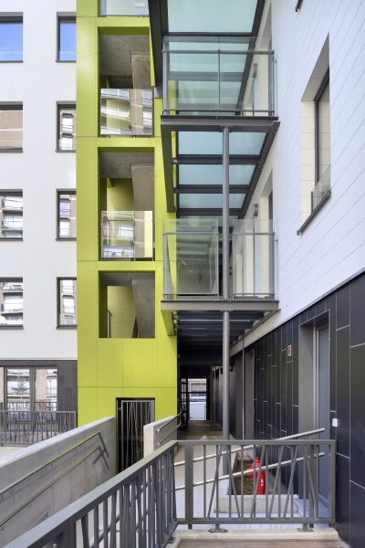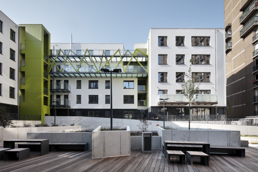 Verschillende insnijdingen in het oorspronkelijke volume verdelen het massieve gebouw in kleinere volumes en brengen meer licht tot diep in het gebouw. Door die ingreep ontstaan er knusse tussenruimtes, terrassen en groene binnengevels. Het ontwerp zorgt voor een rustige woonoase in het centrum van de hoofdstad.