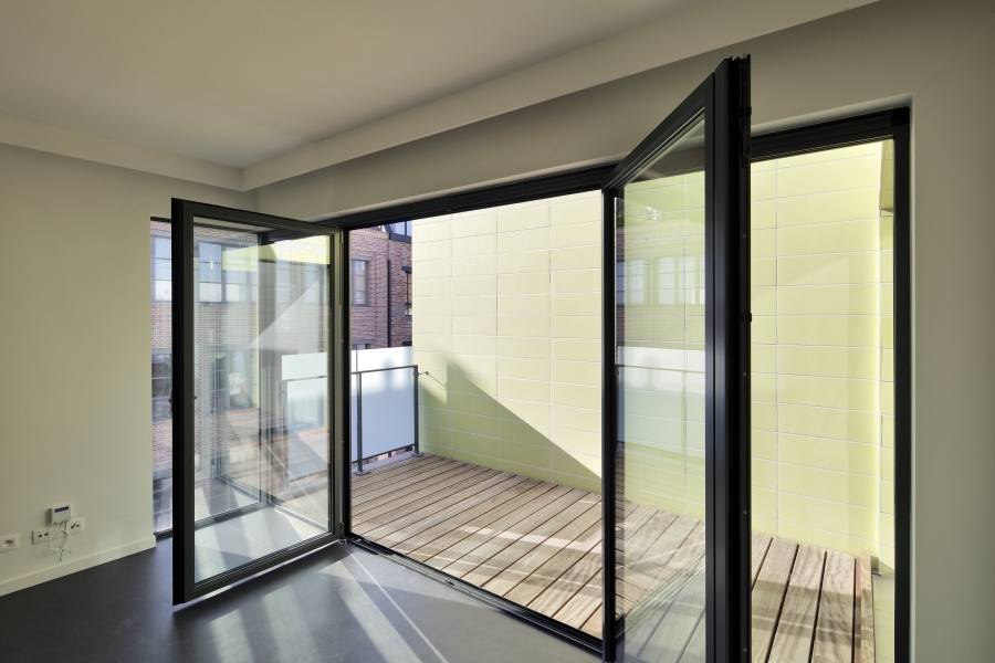 In 2009 schreef de Brusselse Haard een architectuurwedstrijd uit voor de herwaardering van de site “Huidevetters” in hartje Brussel. De opgave omvatte de ingrijpende renovatie van het appartementsgebouw en de heraanleg van het Krakeelplein. Het oude, monolithische appartementsgebouw wordt getransformeerd tot een nieuw, hedendaags gebouw voor sociale huisvesting. De bestaande, piepkleine appartementen worden omgevormd tot nieuwe, open, leefomgevingen die rijmen met de huidige woonnormen.