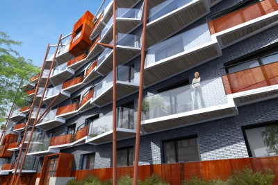 Renovatie van alle buitenschillen van 2 appartementsgebouwen. Naast de vraag naar een originele architectuuraanpak om de sociale appartementsgebouwen te herwaarderen omvatte deze wedstrijdopdracht ook de isolatie van de buitenschil en de installatie en integratie van een nieuw ventilatiesysteem. Het project Krakeel sluit aan bij het project Huidevetters-Wasserij.