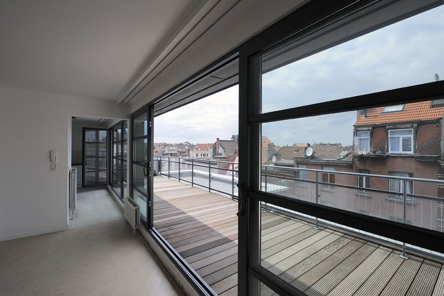 Een enkele centrale verticale circulatie bedient per verdieping alle – ook de meest extreem gelegen - appartementen via externe loopbruggen in staal en glas. De bewoners kunnen die passerelles in de zomer benutten als terras. Een van de appartementen op het gelijkvloers is afgestemd op rolstoelgebruikers.