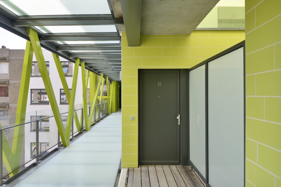 Verschillende insnijdingen in het oorspronkelijke volume verdelen het massieve gebouw in kleinere volumes en brengen meer licht tot diep in het gebouw. Door die ingreep ontstaan er knusse tussenruimtes, terrassen en groene binnengevels. Het ontwerp zorgt voor een rustige woonoase in het centrum van de hoofdstad.