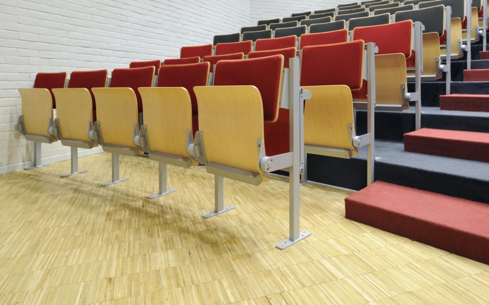 In laatste instantie kreeg de aula een nieuwe, frisse look en een technische update. Door ruim aandacht te besteden aan de akoestiek en de verlichting, werd gestreefd naar een optimale plek voor lezingen Het zware meubilair wordt vervangen door gestoffeerde stoelen met goede akoestische eigenschappen en een aangenaam zitcomfort. De pertinent aanwezige, bruine baksteenwanden worden in een lichtere tint geschilderd, zodat de geesten fris geconcentreerd kunnen blijven op de lezingen.