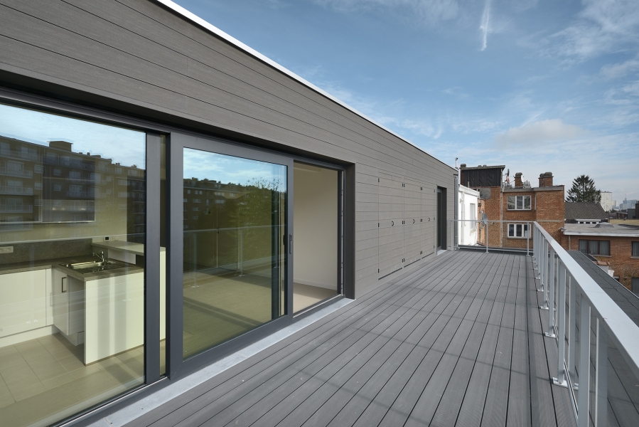 De doorzonappartementen zijn zowel naar de straatzijde als naar de tuin georiënteerd. De zuidgeoriënteerde achtergevel doet de terrassen in het zonlicht baden. De leefruimtes leunen aan tegen de achtergevel en ontvangen rijkelijk daglicht via grote glaspartijen.