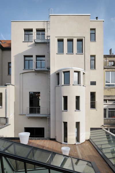 Het complex bestaat onder andere uit een historisch voorgebouw aan de Koningsstraat. Dit waardevolle hoofdgebouw, in 1869 gebouwd door baron Oscar de Mesnil de Volkrange, was dringend aan restauratie toe ten gevolge van jarenlange leegstand.