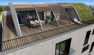 De sociale huisvestingsmaatschappij schreef een wedstrijd uit voor het ontwerpen van twee appartementsgebouwen met elk acht tweepersoonsappartementen en één penthouse.