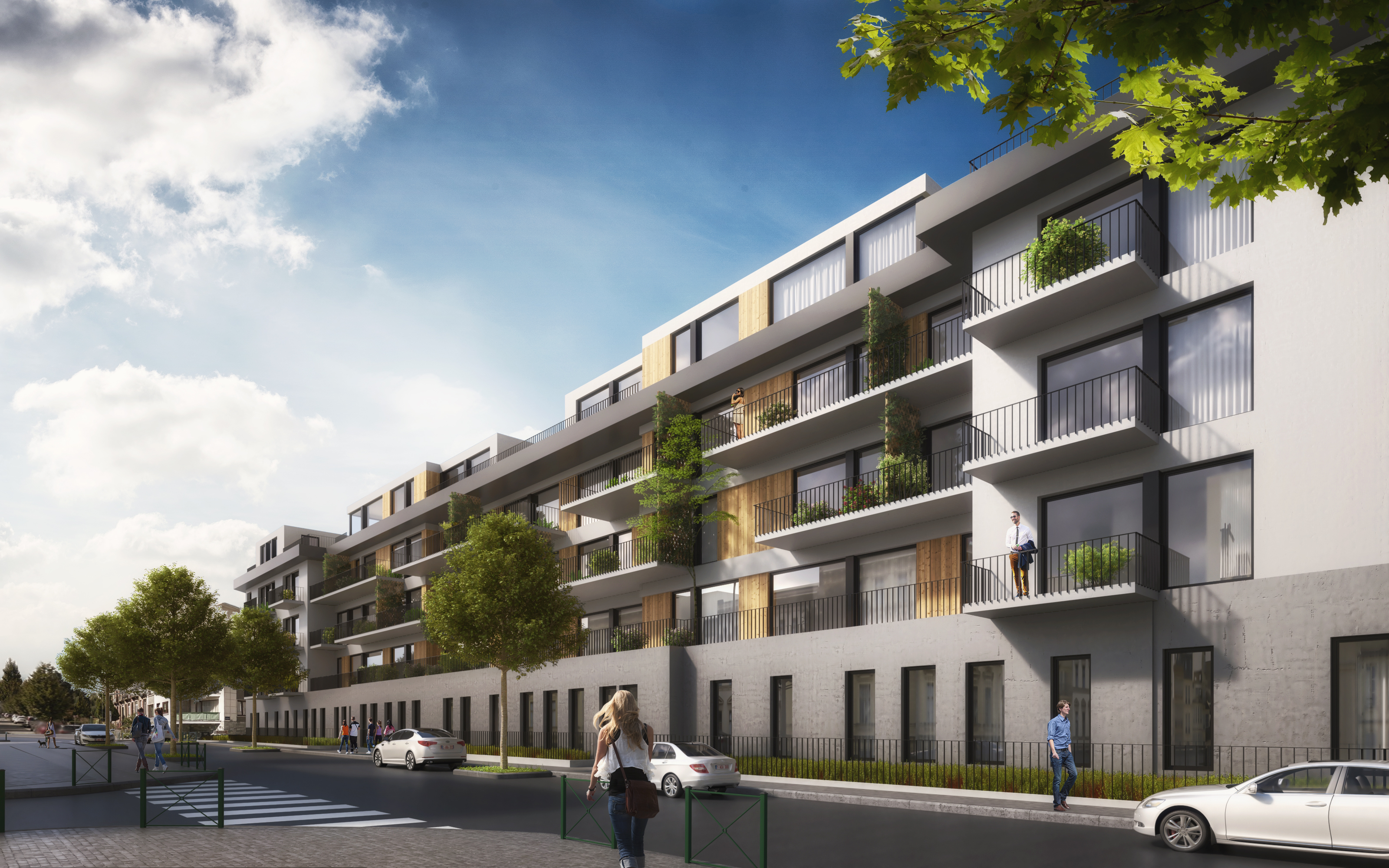 Ce projet de concours comprend une rénovation partielle d'un bâtiment existant et une nouvelle construction. La rénovation du bâtiment existant a été prise en charge par DEWILarchitectes. Le bâtiment à rénover est un immeuble de bureaux dont nous conservons autant que possible la structure existante. Le bâtiment aura deux centres de circulation, ce qui rendra les étages et le sous-sol accessibles. Les noyaux sont des volumes emblématiques qui rendent la circulation très lisible. Des appartements ont été aménagés aux étages. Il en résulte une excellente orientation, avec un apport du soleil pour chaque appartement. Les espaces de vie s'appuient sur les façades et reçoivent une lumière du jour abondante à travers de grandes baies vitrées. Leur orientation vers le sud-est fait que les terrasses et les jardins avant se baignent au soleil. Les chambres sont situées sur les façades arrière. Les zones fonctionnelles qui nécessitent peu ou pas de lumière du jour, telles que la salle de bain, les toilettes, le débarras et le vestiaire se trouvent dans un noyau fixe du bâtiment. Les fonctions identiques se superposent invariablement, de sorte que le nombre de nœuds et de gaines techniques puisse être rempli de manière extrêmement rationnelle. Chaque niveau abrite 11 appartements de différentes typologies.