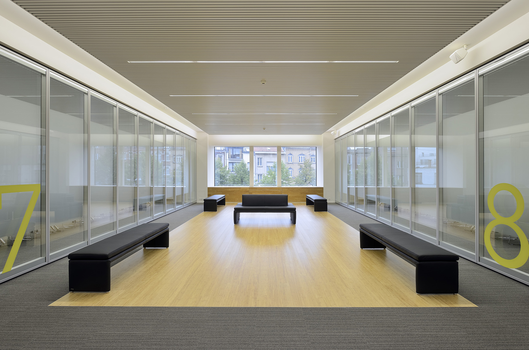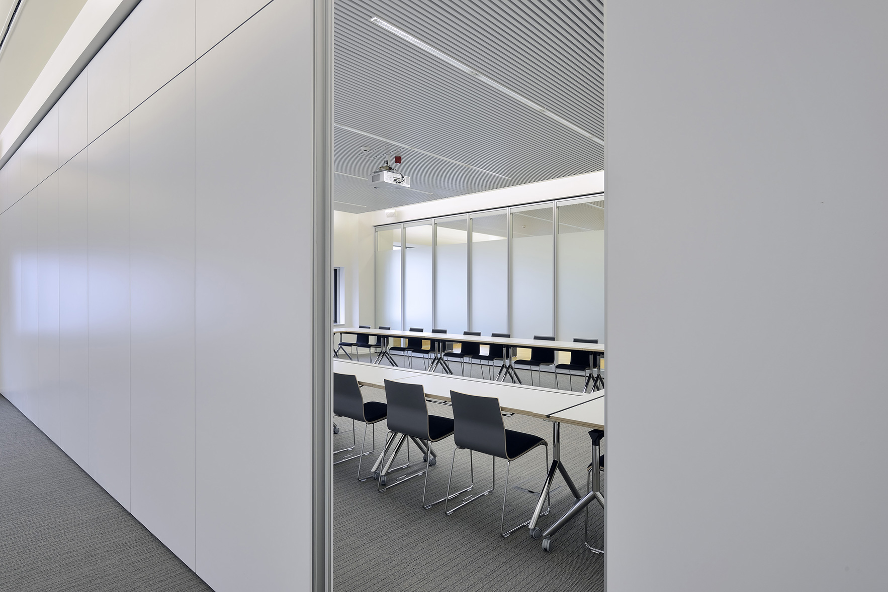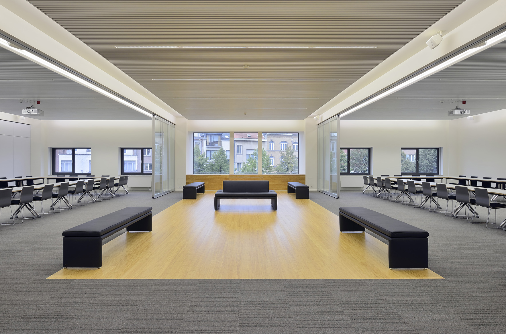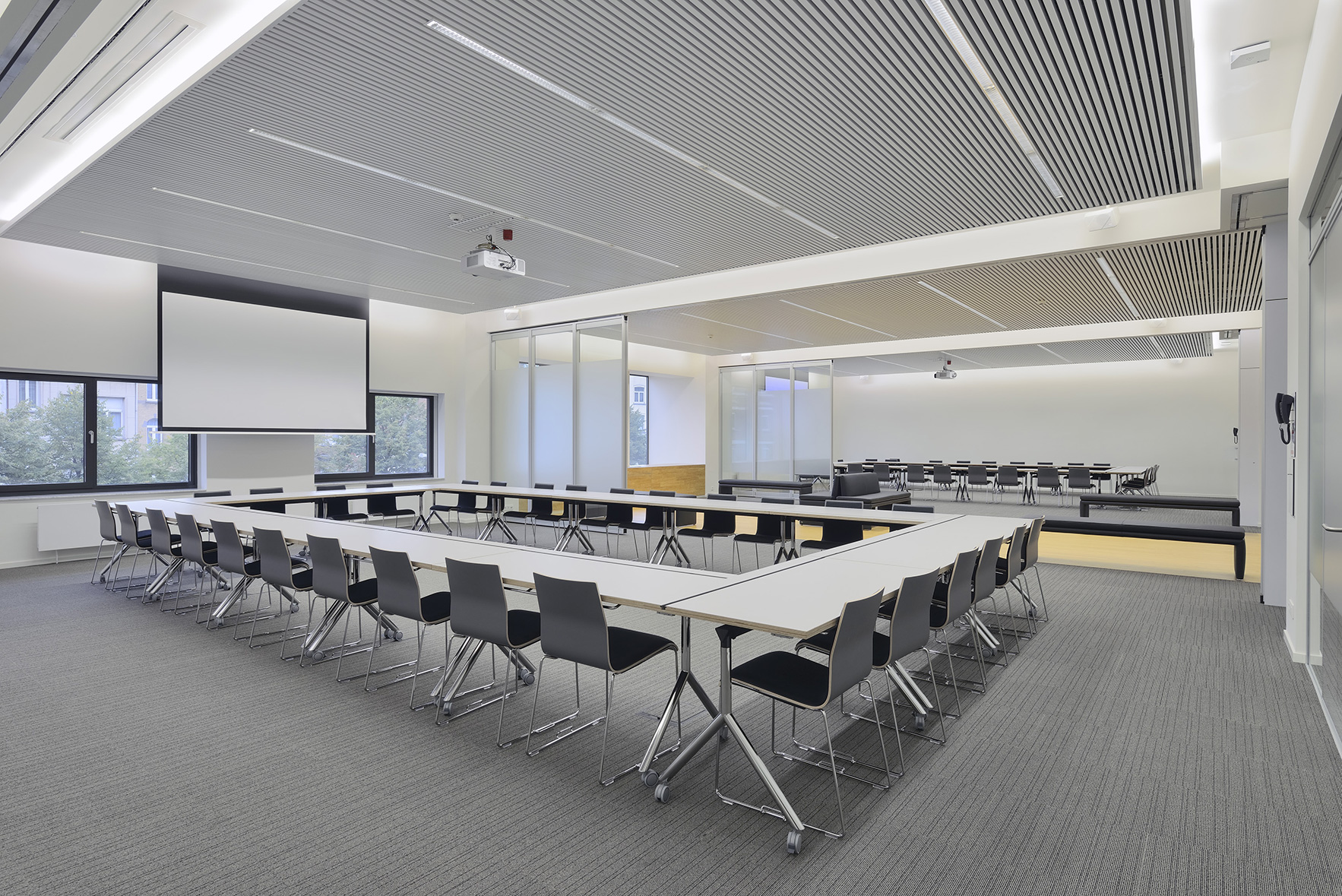 Les capacités souhaitées des salles peuvent être interprétées souplement. Les nouvelles salles sont équipées de parois en verre acoustiques fixes et mobiles, permettant différentes configurations.