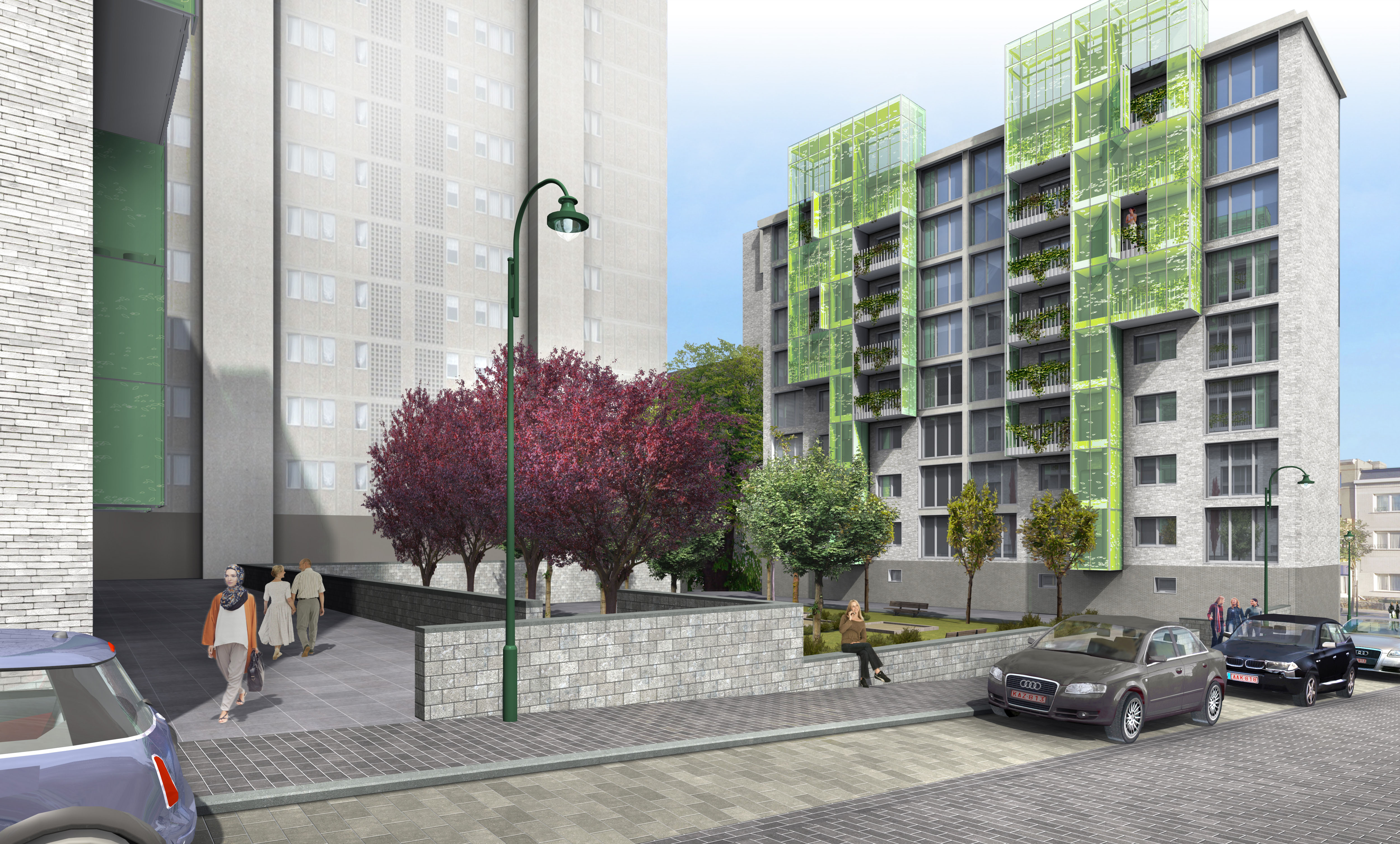 Renovaite van alle buitenschillen van 2 appartementsgebouwen. In 2015 schreef de Brusselse Woning een wedstrijd uit voor de gevelrenovatie van de site "Hoog III". DEWIL architecten i.s.m. denc!-studio werd tot laureaat verkozen. Het monolitische karakter van de bestaande gebouwen wordt door lichte terrasstructuren doorbroken.