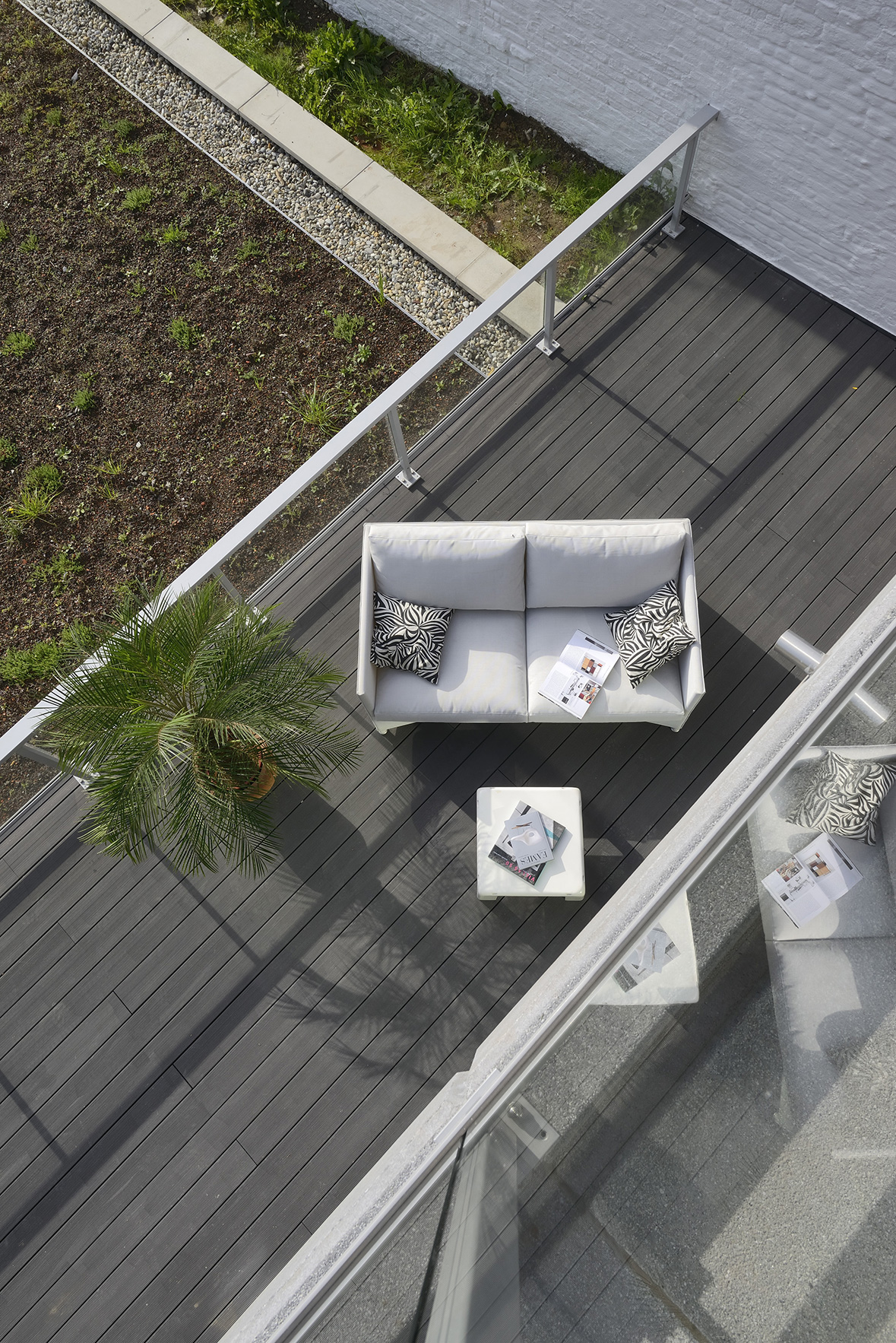 De ondergrondse parking biedt ruimte voor 4 auto’s. Het groendak van de parking loopt visueel over naar de achtergelegen tuin. Via een trap worden beide verbonden met elkaar. Op die manier is de tuin toegankelijk voor alle bewoners van het gebouw. De weelderige tuin vormt een aangename groene oase in de stad.